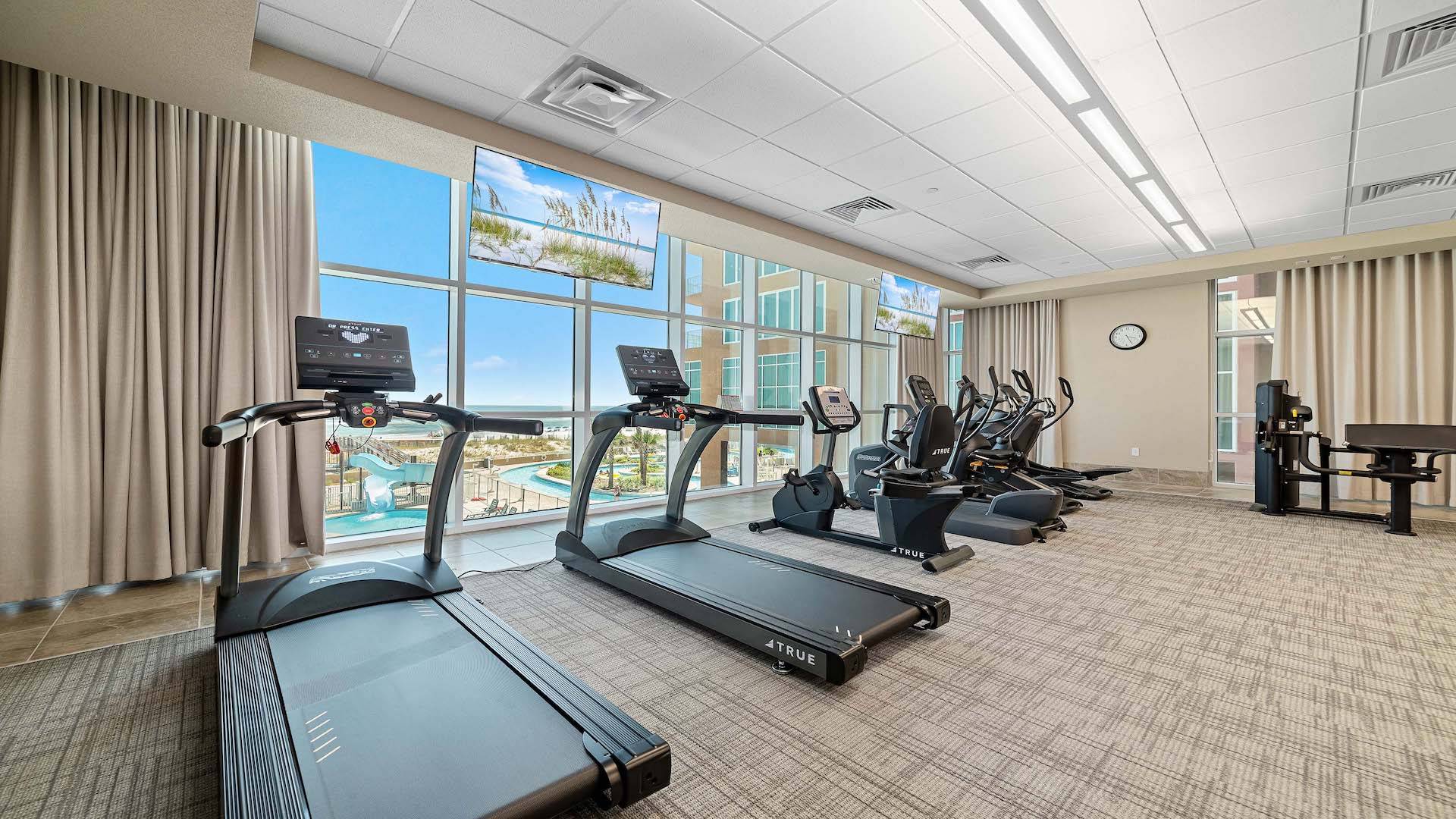 There is an awesome zero entry outdoor pool with a water slide which connects to a lazy river, large splash pad, heated in-door swimming pool, large jacuzzi, state-of-the-art fitness center overlooking the Gulf.